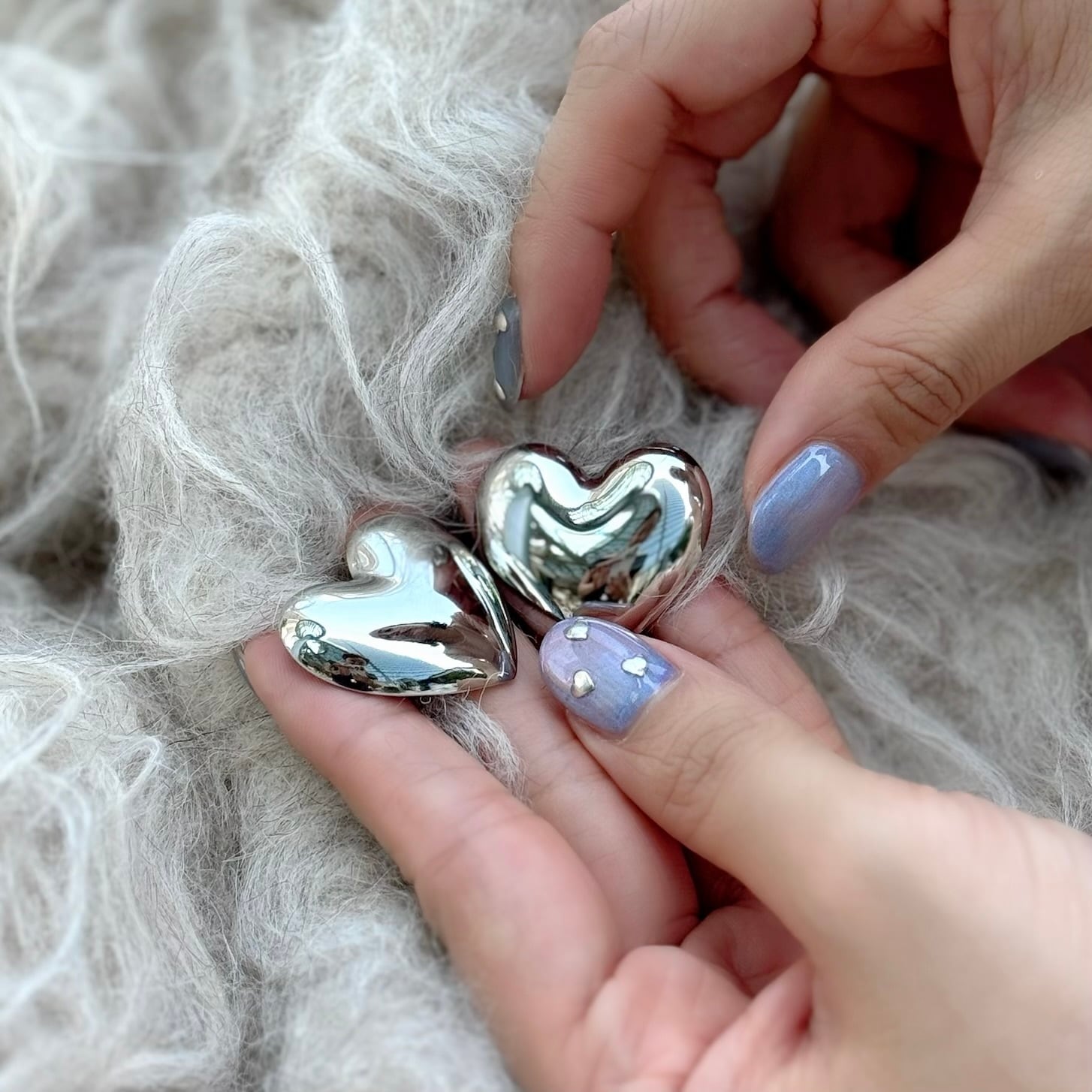 インパクト大の大きめハートが特徴。シルバーカラーが甘すぎず大人の女性にもぴったりなアクセサリーに仕上がっています。