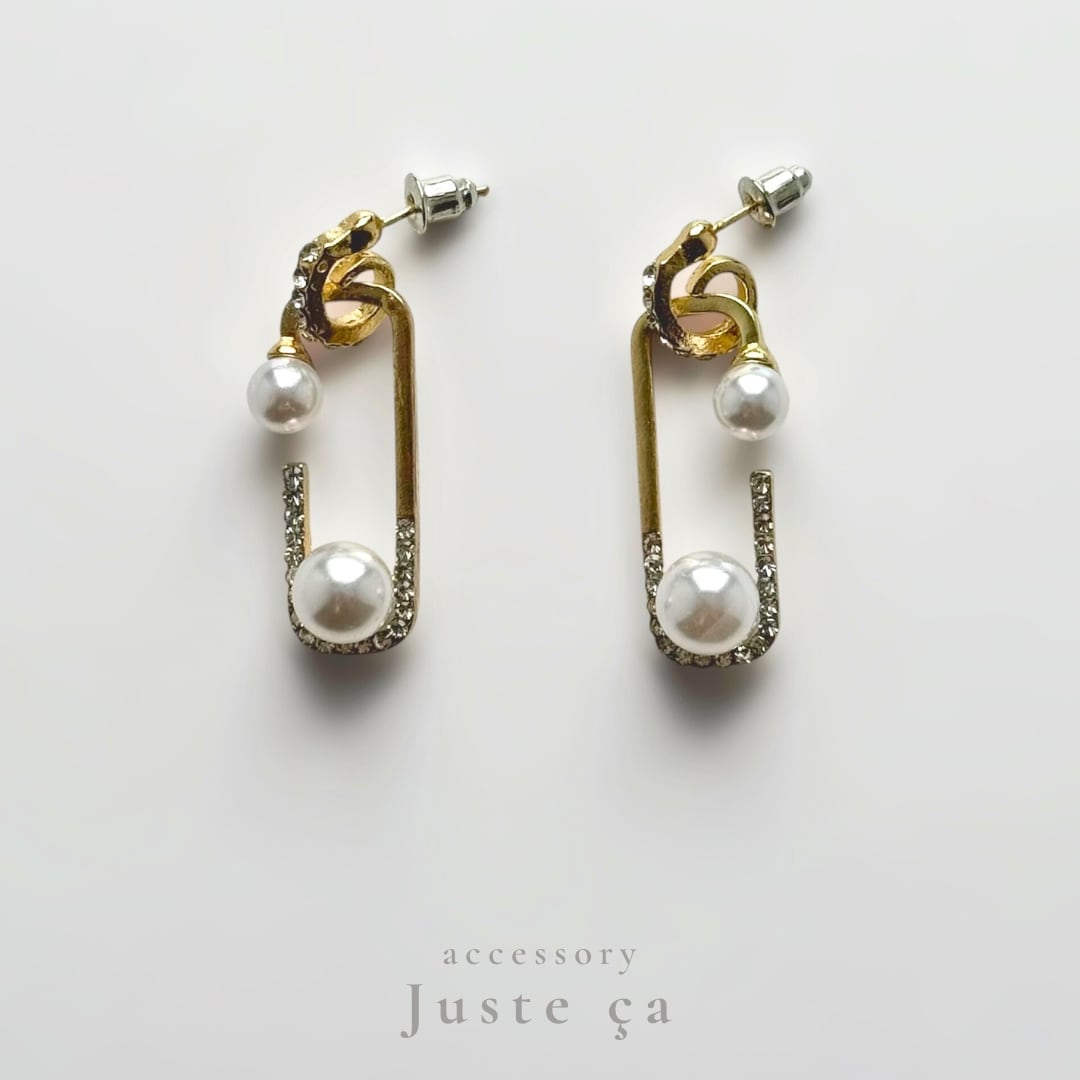 優雅なU字ラインに煌めくストーンを散りばめたピアス。
