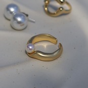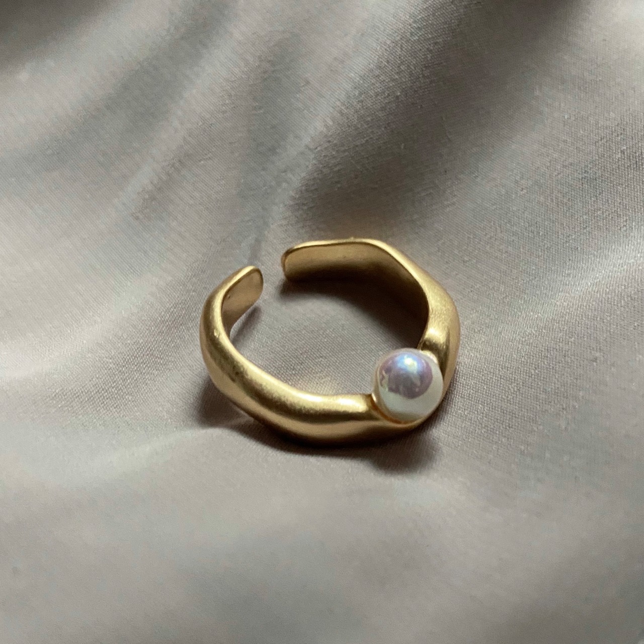 マットで波打ったゴールドのリングにパールがちょこんと乗った、