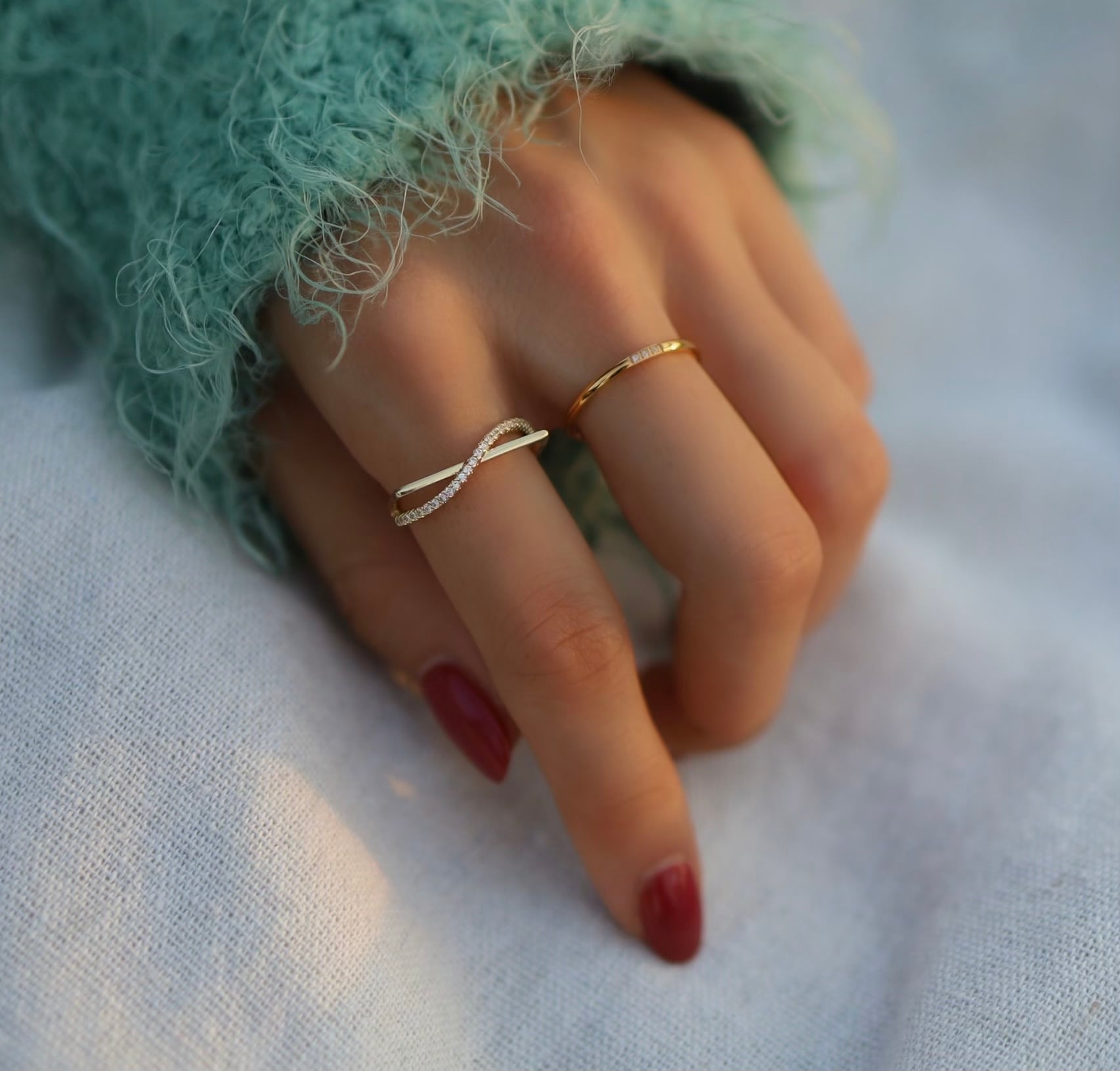 角ばったリングに、輝くラインが寄り添う形でデザインされた