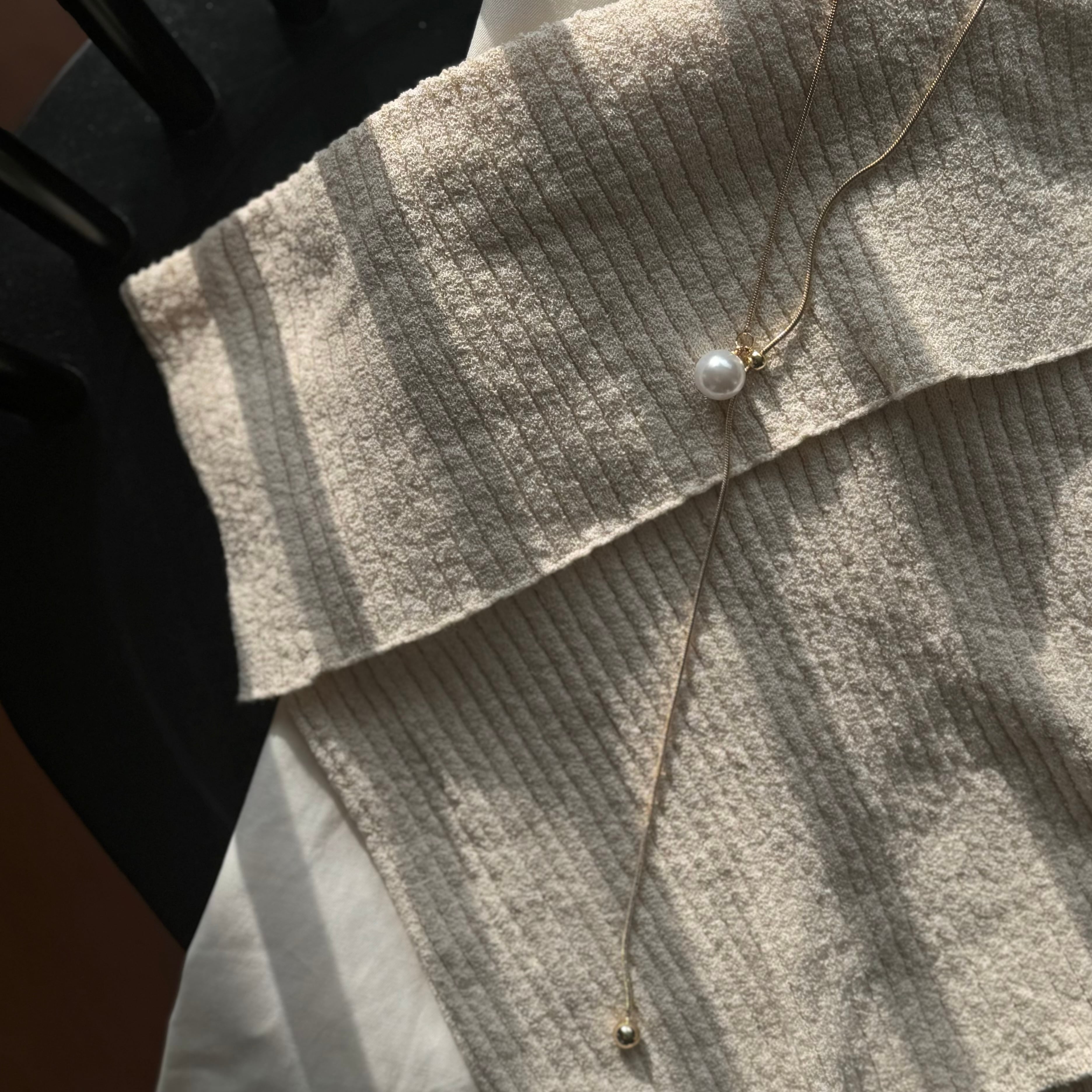一粒の大きめパールが印象的な、サイズ調整が可能なネックレス