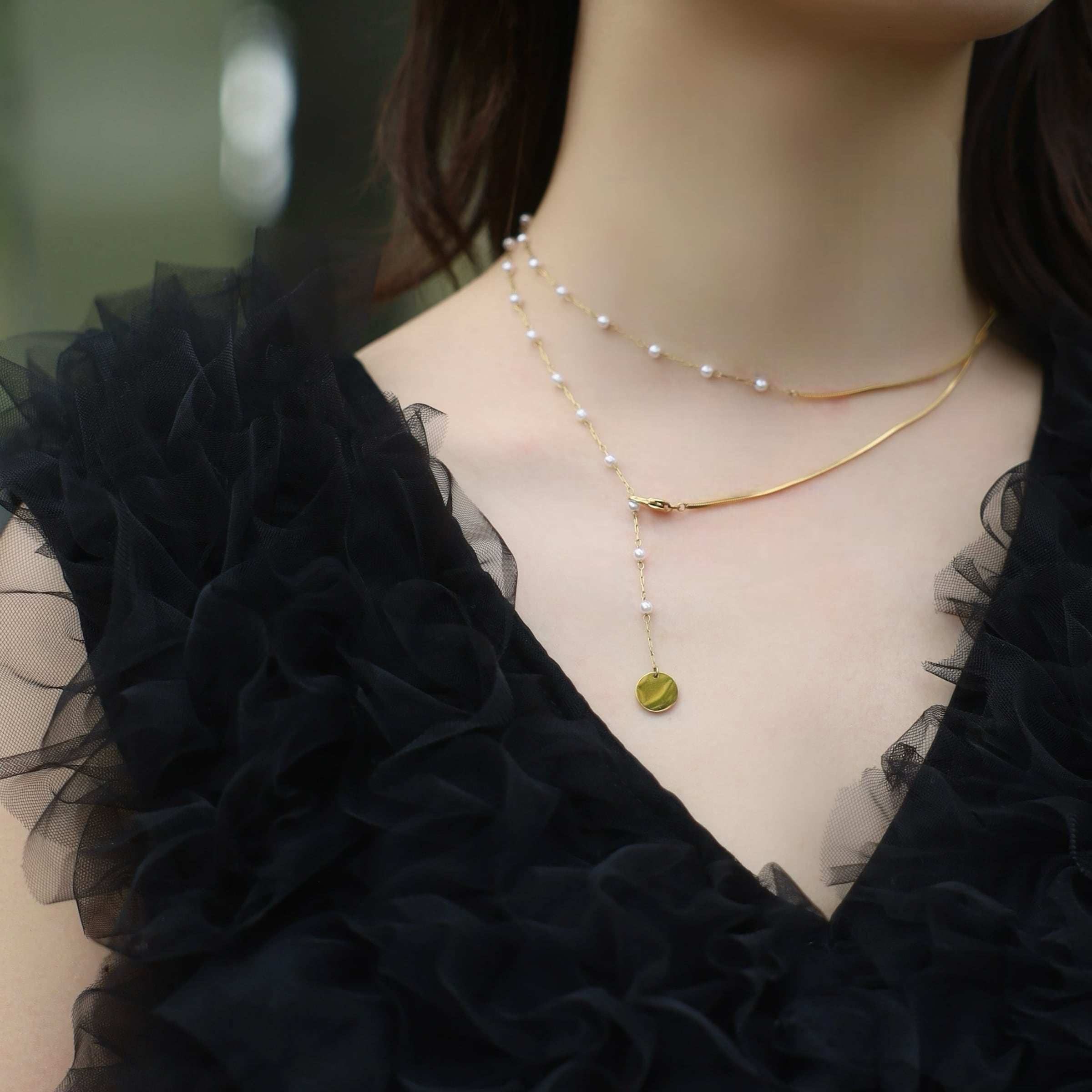 首周りを華やかにする2連のネックレス